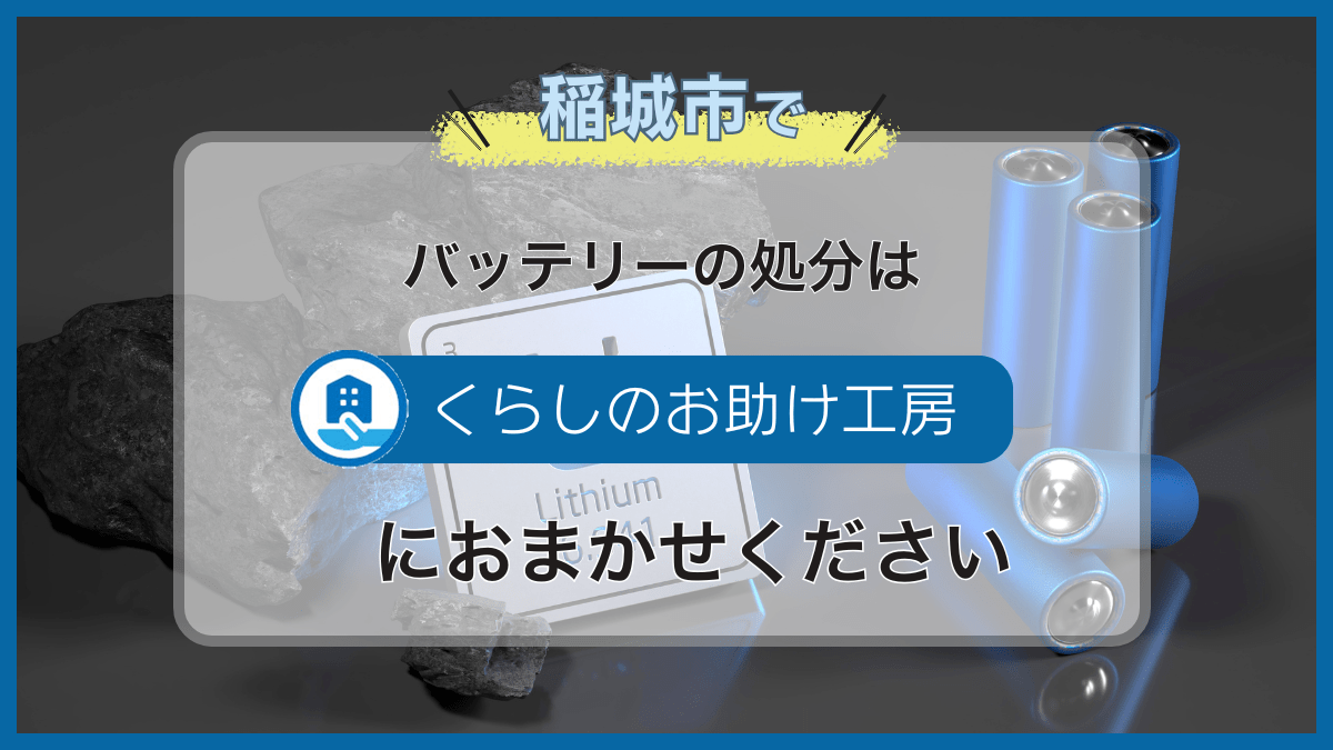稲城市でバッテリーの処分にお困りの方は、便利屋「くらしのお助け工房」におまかせください。処分費用は2,200円から対応しています。お見積もりは無料ですので、お気軽にご相談ください。
