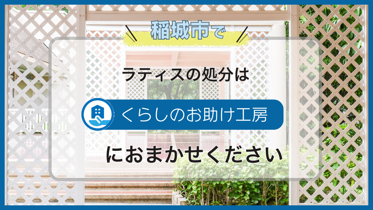 稲城市でラティスを手間なく処分したい方は、便利屋「くらしのお助け工房」におまかせください。作業費用は3,300円から対応しています。設置や取り付けも対応可能です。ご依頼内容や作業環境などにより費用は異なります。